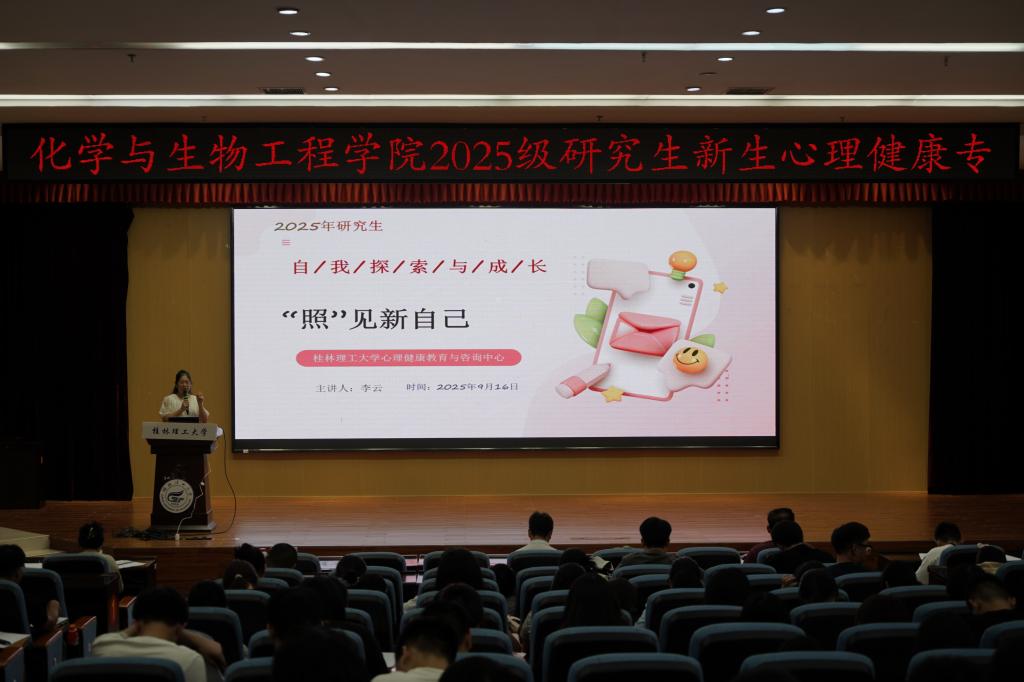 2025级研究生新生心理健康专题讲座在学校图书馆报告厅顺利举行。学校心理健康教育中心教师李云围绕“自我探索与成长”主题开启《“照”见新自己》主题讲座,212 名研究生新生聆听讲座。