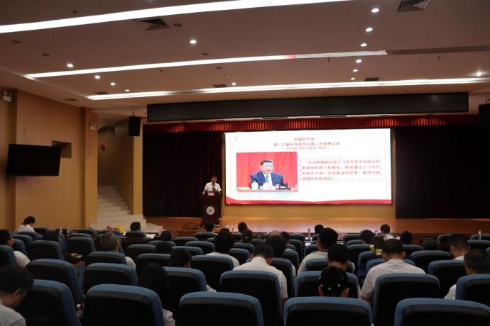 加快发展高质量发展开创新局面、展现新气象》为题,首先传达了学校2024年改革发展研讨会的会议精神,强调全体教师要深刻领会和把握习近平总书记关于全面深化改革的一系列新思想、新观点、新论断,深刻领会和把握推进中国式现代化这一鲜明主题,要深入学习贯彻党的二十届三中全会精神和习近平总书记关于广西工作论述的重要要求,聚焦推动学校党委三届七次、八次全会精神落地落实,以强烈的责任感、使命感和紧迫感,对标对表找差距、多措并举抓落实,全力以赴为成人影视片