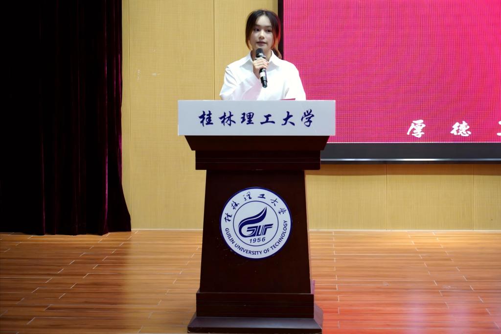的征程。优秀在校生代表朱恬分享了学习生活经验,鼓励新生们要专注学业、全面发展,以此收获成长,为社会发展贡献智慧和力量。